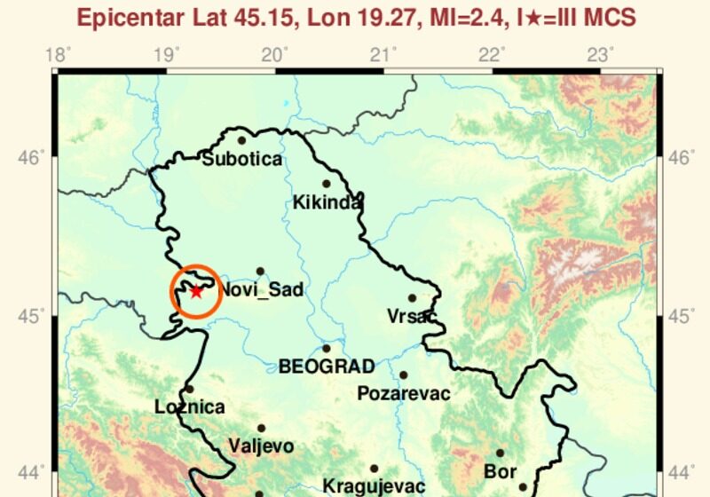 Republički seizmološki zavod (RSZ) je objavio da je rano jutros registrovan zemljotres magnitude 2,4 u regionu mesta Šid, a čiji intenzitet ne može izazvati oštećenja na objektima. RSZ je precizirao da je zemljotres registrovan u 3.53 sati po lokalnom vremenu, te da je teorijski intenzitet u epicentru “procenjen na tri stepena Merkalijeve skale”. “Zemljotresi ovakvog […]