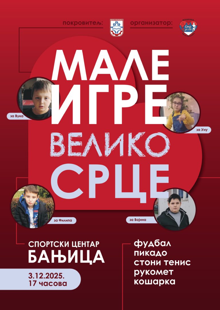 U Beloj Palanci u sredu 3. decembra sa početkom od 17.00 sati u Ustanovi za sport ,,Sportski centar Banjica’’ biće organizovan humanitarni događaj ,,Male igre – veliko srce’’.